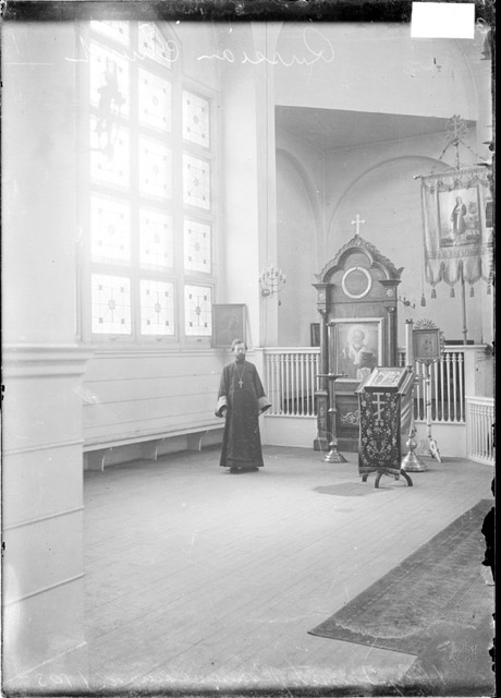 I’m not necessarily surprised by the vandalism in these days, in this place. It’s sad, though. The windows that were broken were over 100 years old. They are windows thoroughly unlike any other stained glass windows in any other church I’ve ever been to – “modern” geometric designs intended to turn any light going through them into intense golden rays in the sanctuary. It’s the genius of the architect, Louis Sullivan, in one of his few designs for houses of worship. The same windows that can be seen here, in a Library of Congress photo of St. Sebastian Dabovich.