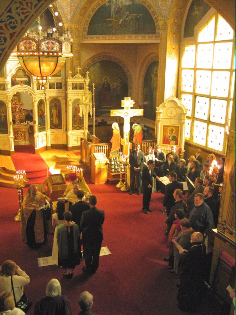 Things have changed, though. The Lutheran Deaconess church which stood across the street from Holy Trinity for a century was torn down to make way for overpriced condos. The city is getting dangerous again. The last time I was down there was last Pascha; on a beautiful, warm spring night. All around the city, people were out and about. Then we had to detour off of Irving Park because of “police activity” on our trip down there. During the service, as we processed around the church, I, with the five kids, were in the back. My 10-year-old tapped me on the shoulder and told me to turn around and look across the street behind us. There were two men fighting, and the one looked as if he were starting to strangle the other, until they both seemed to notice that of the 300 people or so performing this strange ritual by the church, a woman and a couple of her kids were actually watching them, and in a flash, both dark figures scurried off into the night in separate directions.