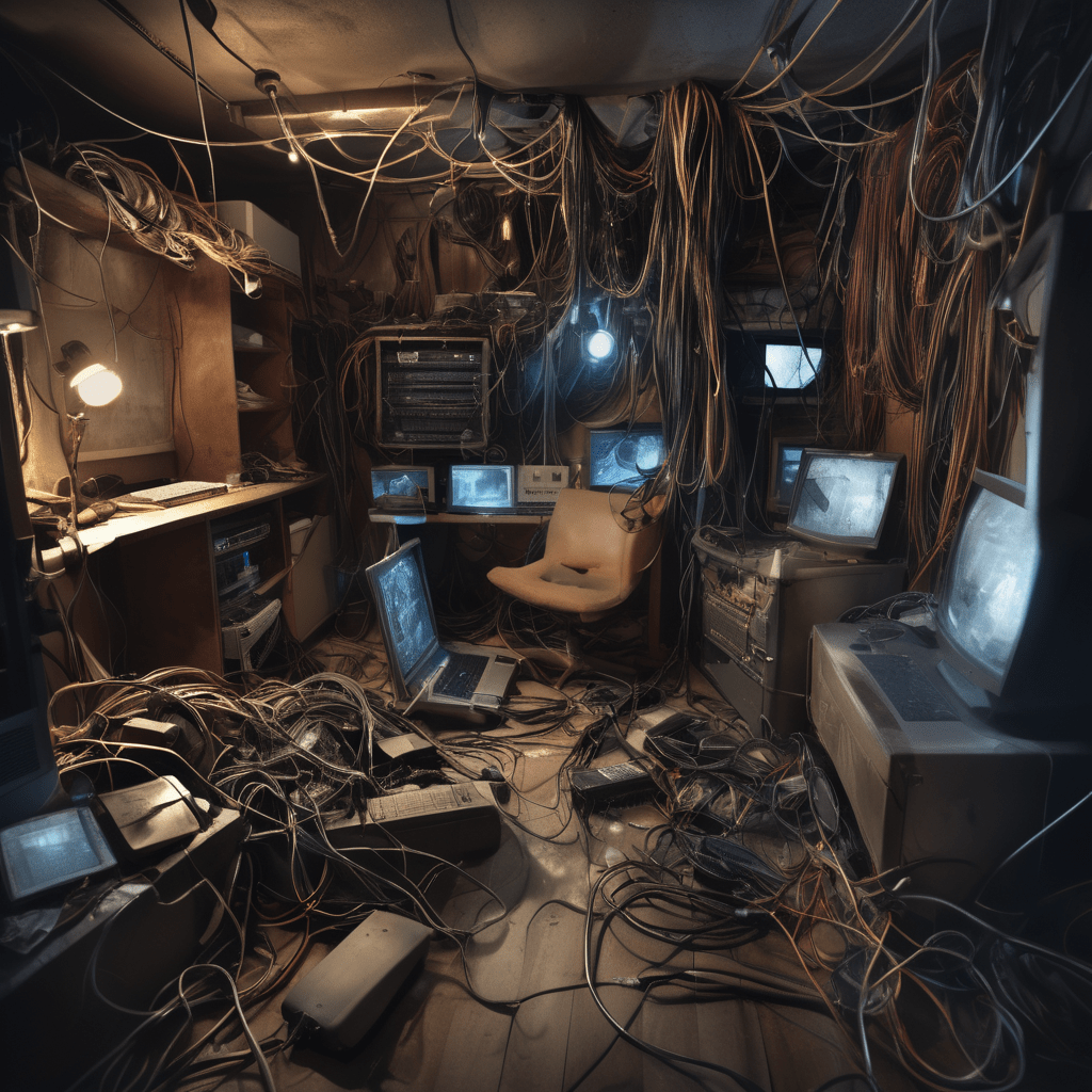 AI prompt: computer cables rising up from the basement (steampunk) Despite all of this, I’m not in the greatest state of mind at the moment. I don’t suppose that there’s much a couple of weeks of sleep wouldn’t do wonders for, but getting adequate sleep isn’t really in the cards for awhile, I suppose.